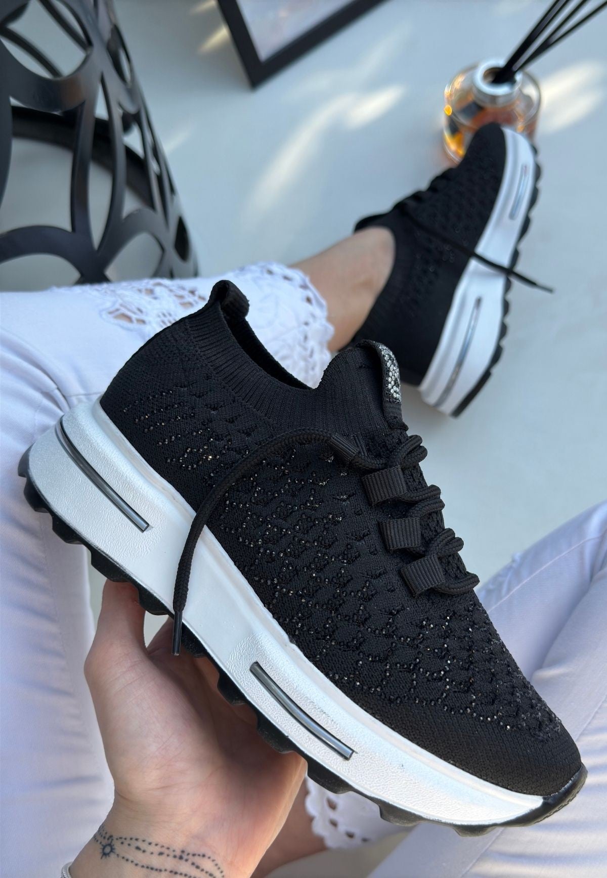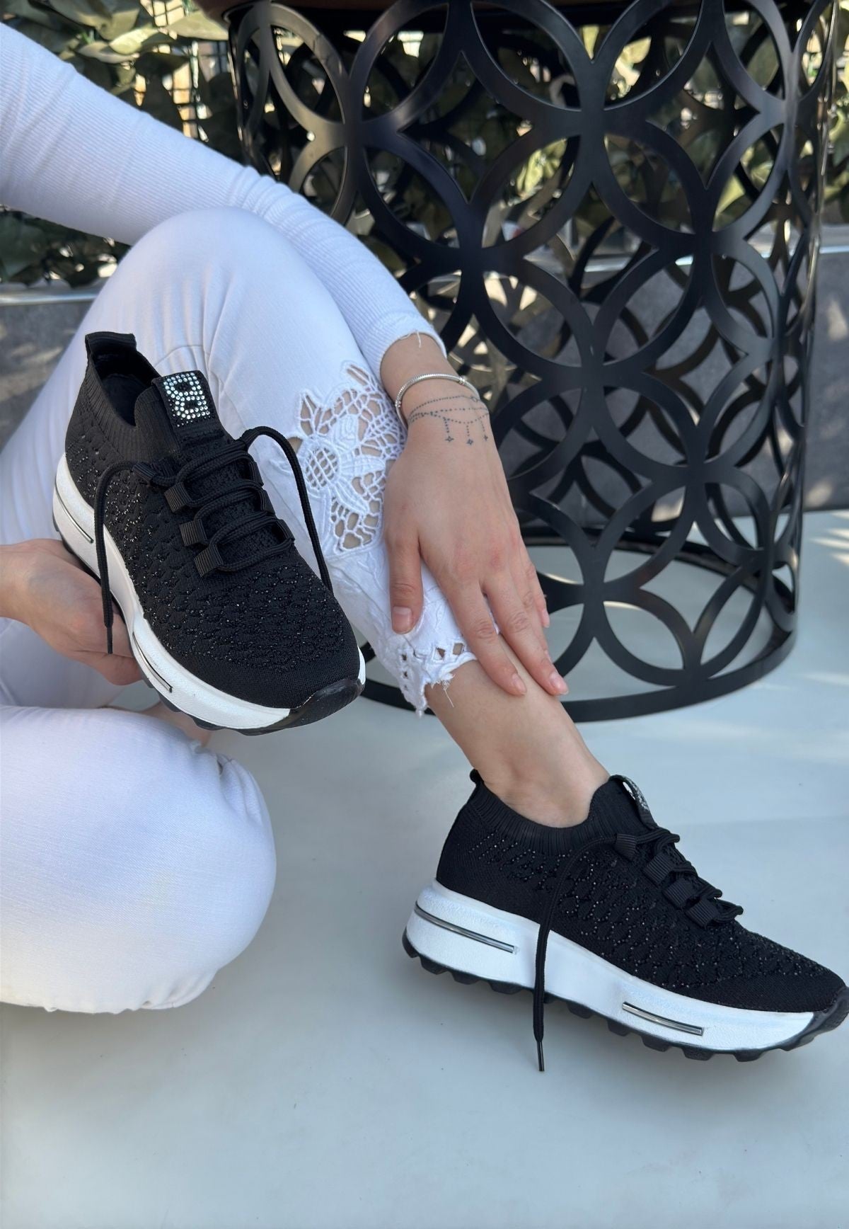 Cilla Siyah Triko Boncuk İşlemeli Spor Ayakkabı
