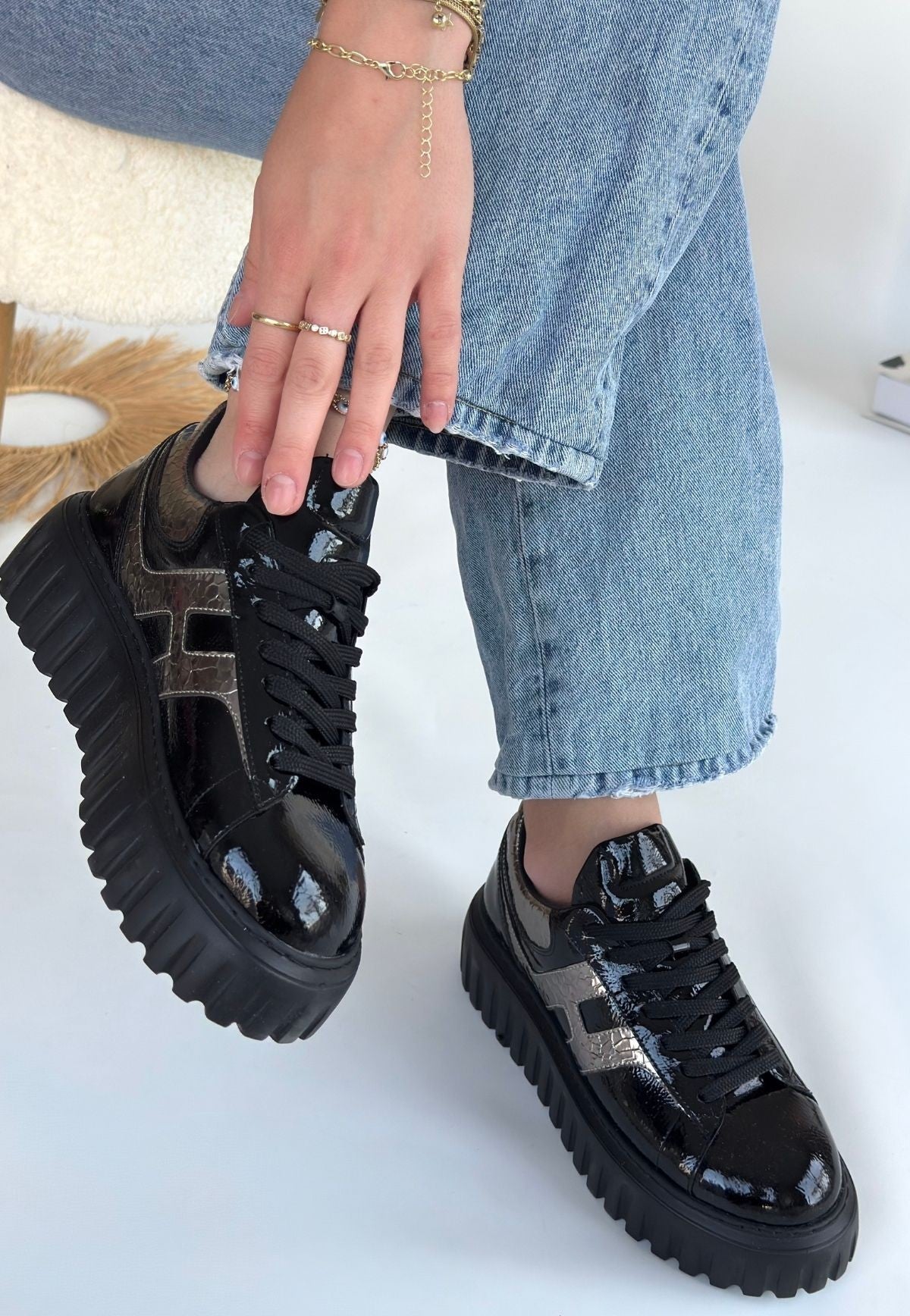 Gesti Siyah Rugan Platin Detaylı Bağcıklı Spor Ayakkabı